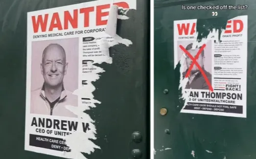 #EatTheRich alone has surged by over 500 percent each ensuing week since Thompson’s murder, with the hashtag often accompanied by incitement to violence against other corporate figures. “CEO Wanted” posters have appeared in several cities and though they may be ripped down, their images are circulating widely online.