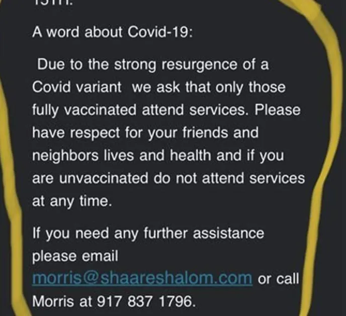Should the unvaccinated have the right to pray in a synagogue?