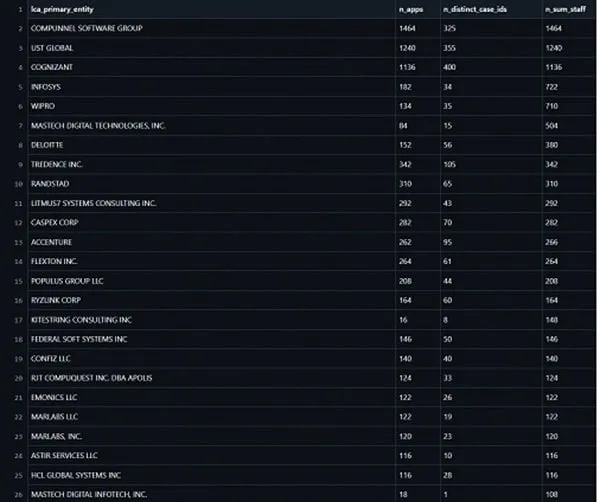 Here are Walmart's Top 25 H-1B contracting companies: