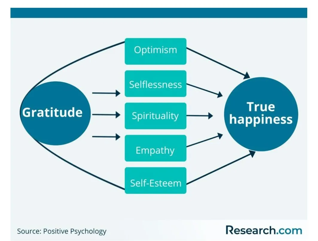 Research.com's Imed Bouchrika explains that gratitude has two components — an acknowledgment of the goodness and recognition that it comes from an outside source:
