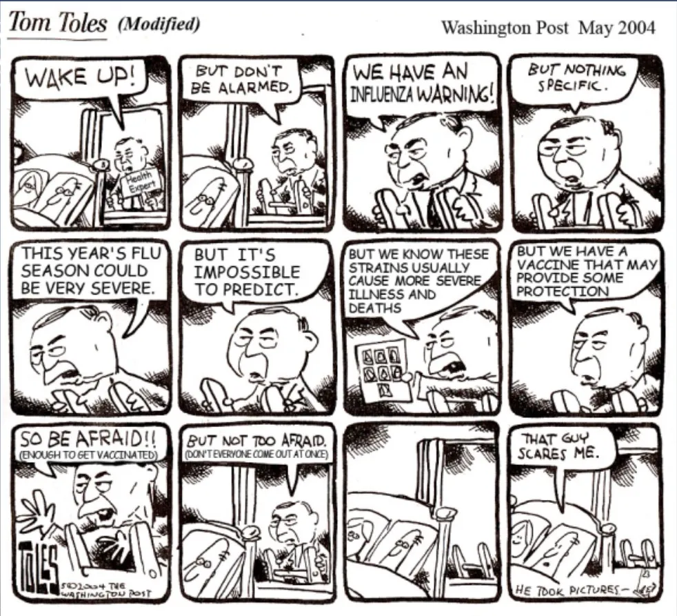 > Getting medical experts and public health authorities to “publicly … state concern and alarm (and predict dire outcomes) — and urge influenza vaccination”