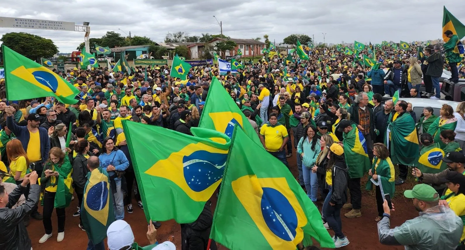Protesters gather in front of Londrina Military Shooting Range
